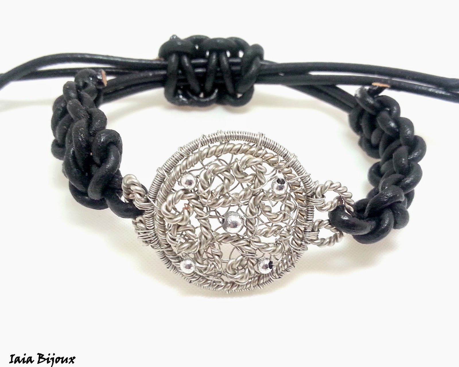 Preferisco lavorare il rame più di qualsiasi altro metallo ,ma ho notato che le commissioni che mi vengono richieste di più sono quelle in silver .Sicuramente l'effetto è diverso ,il silver è più raffinato ,più elegante ,può essere indossato più facilmente ...credo sia per questo ,ma il calore che mi regala una creazione in rame è maggiore...nonostante questa mia predilezione devo accontentare le richieste delle clienti e seguire i loro gusti quando mi viene chiesta una particolare commissione .Così nasce questo bracciale realizzato con rame rivestito silver e filo in cuoio nero.Il bracciale è composto da due anelli saldati tra loro e poi avvolti da un reticolato in cui ho incastonato dei cuori in silver e delle mini sfere argentate